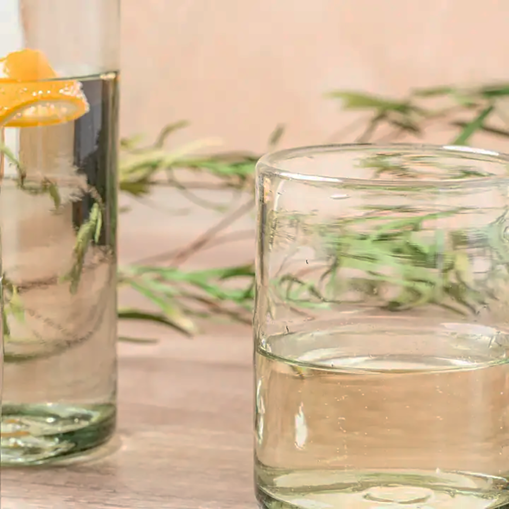 Handblown Mexican Glasses in clear - the perfect match for simple, understated, and no-fuss drinks. Sustainably handcrafted by talented glassblowing artisans in Jalisco, Mexico, each glass is meticulously shaped while molten hot, preserving its distinctive character.