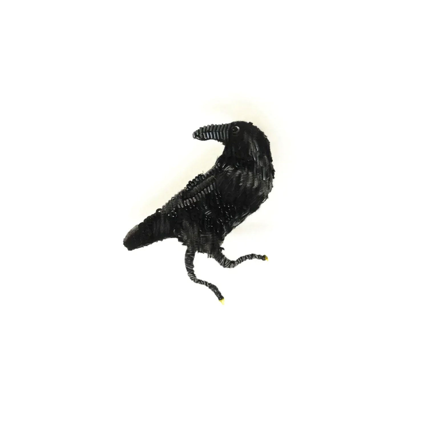 This exquisitely crafted brooch is a miniature piece of art. The beaded and embroidered Raven Brooch measures 2" long x 1.2" wide and comes packaged in a handsome embossed jewelry box with informative notes and care instructions.