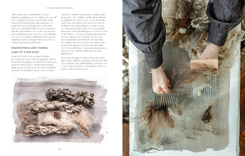 - How to choose raw fibers for use in your work: the author’s are ethically sourced from various ecologically responsible sources, including a rescue flock of sheep on the South Downs.